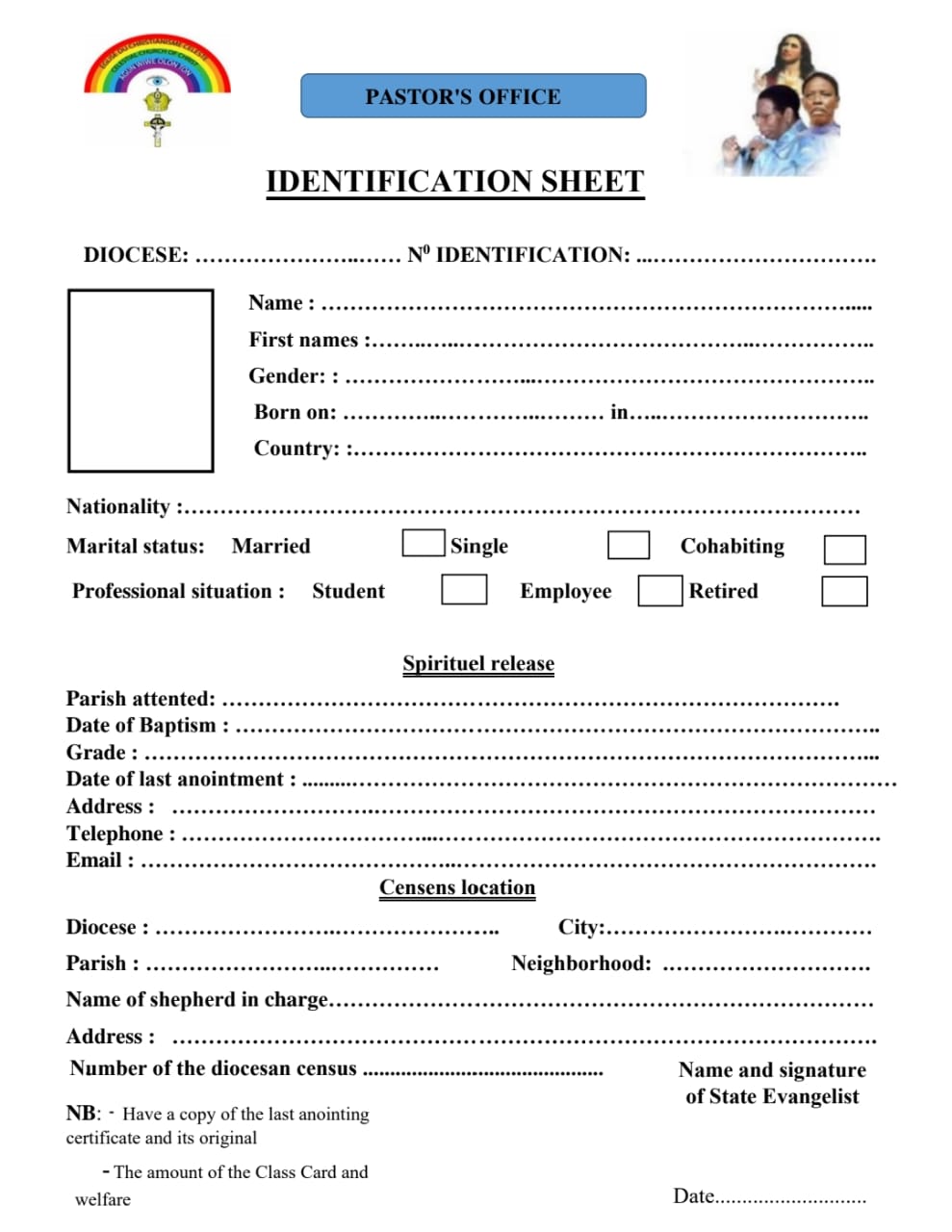 To access the Individual Identification form, please copy/download it below. Kindly complete the form and attach a recent passport-sized photograph of yourself wearing your Sutana. Once completed, send the form to AVSE Gouan Barthelemy through WhatsApp at +2349032908915 or via email at infoimeko01@gmail.com.